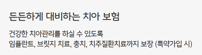 높은 치료 비용이 부담스러우셨다면, 치아보험 특약 가입을 고려해보시기 바랍니다.