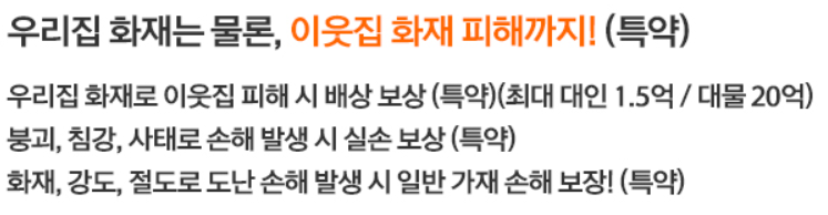 화재 발생 시 임시거주비 보장: 화재로 인해 집에 거주할 수 없을 경우, 수리 기간 동안 최대 90일까지 임시 거주비를 보장합니다.