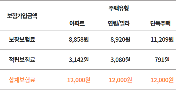 가입기준 : 40세, 남자, 상해1급, 월납, 20년만기, 전기납, 30평, 건축년도 5년, 주택유형별(건물급수 1급)
