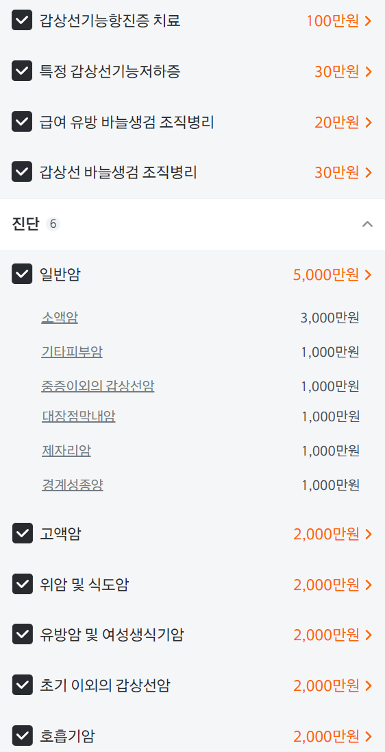 | 초기 이외의 갑상선암 | 2,000만원 |