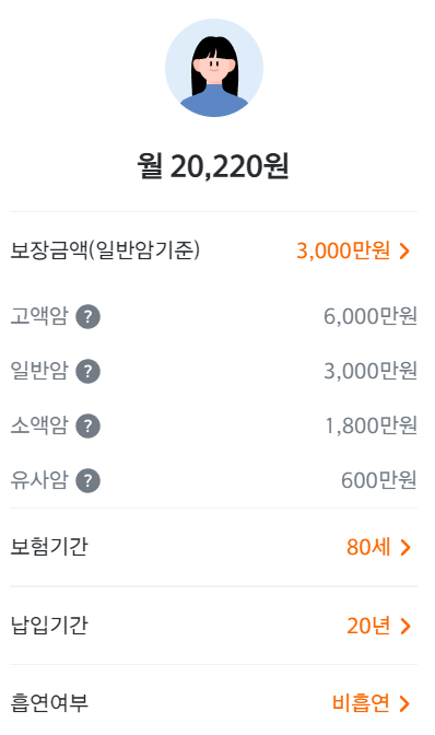 보험료는 가입자가 원하는 조건에 따라 달라질 수 있습니다.