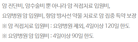 | [갱신형]암직접치료(요양병원 제외)입원비(4일이상120일한도) | - | 5만원 | 5만원 |