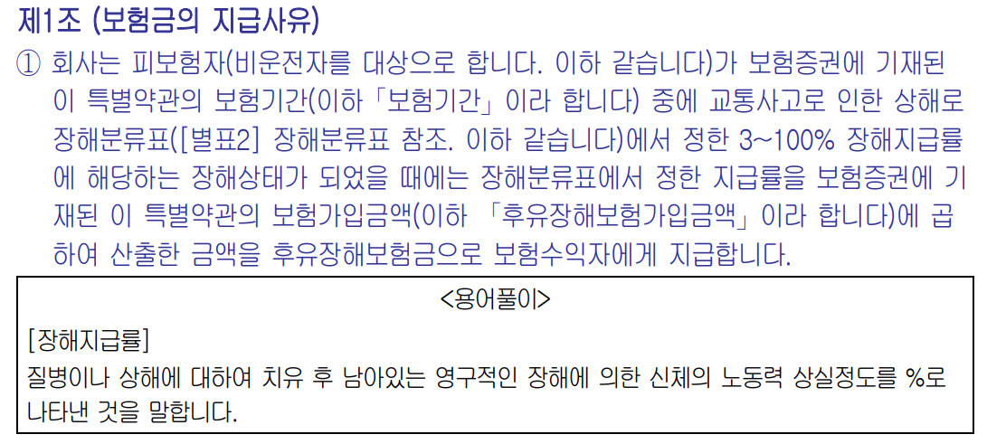교통상해 후유장해(3~100%) 특별약관 요약